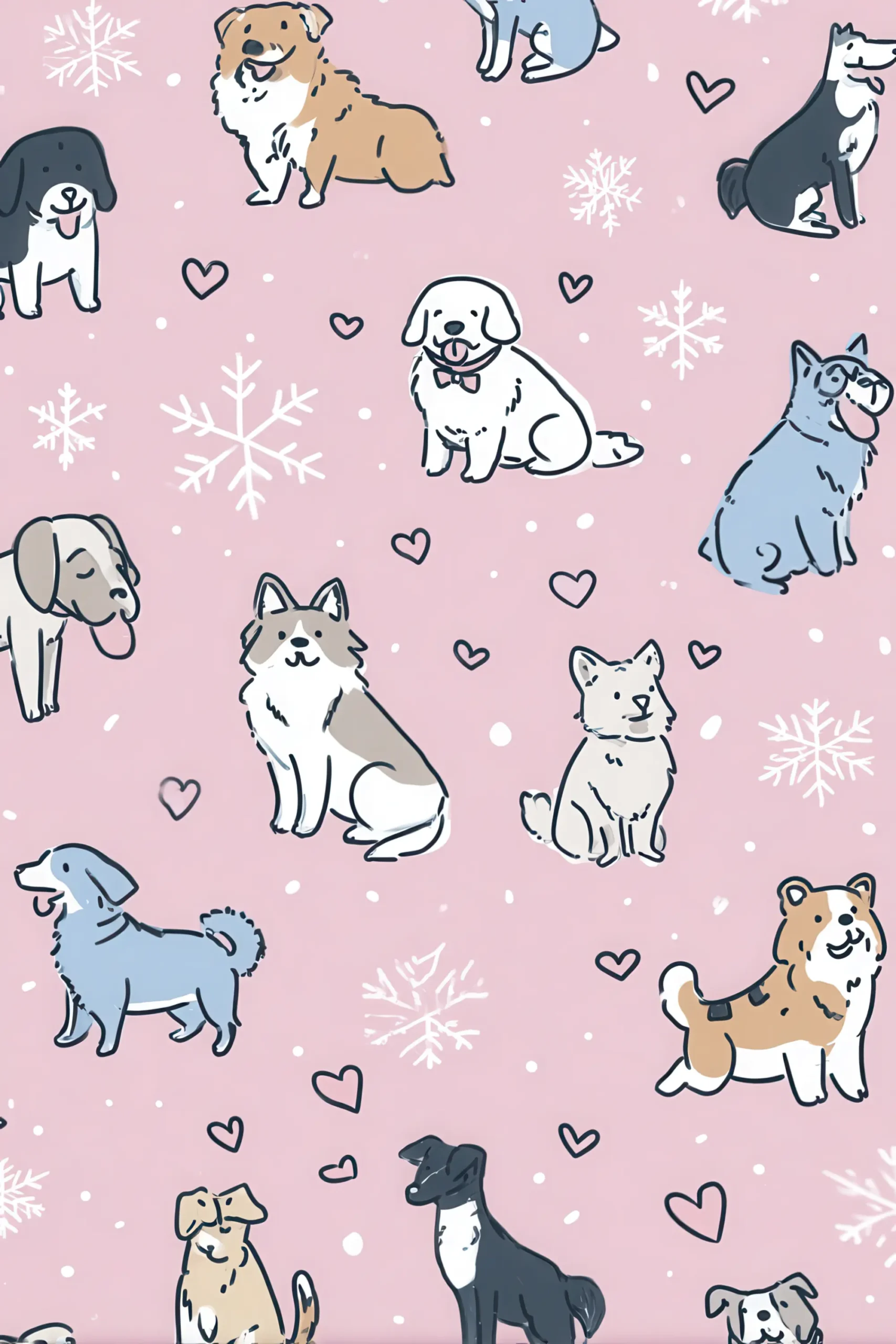 Soft lavender tones, doodled pups, tiny hearts, and gentle snowflakes — the perfect mix of cute and cozy winter magic.